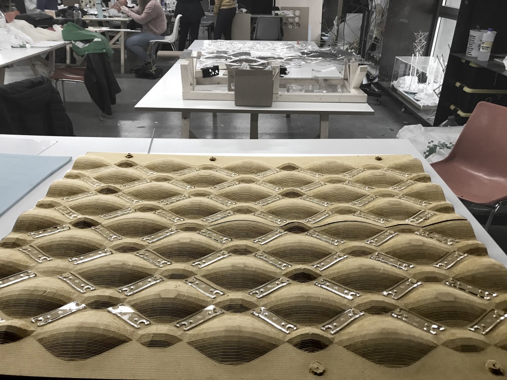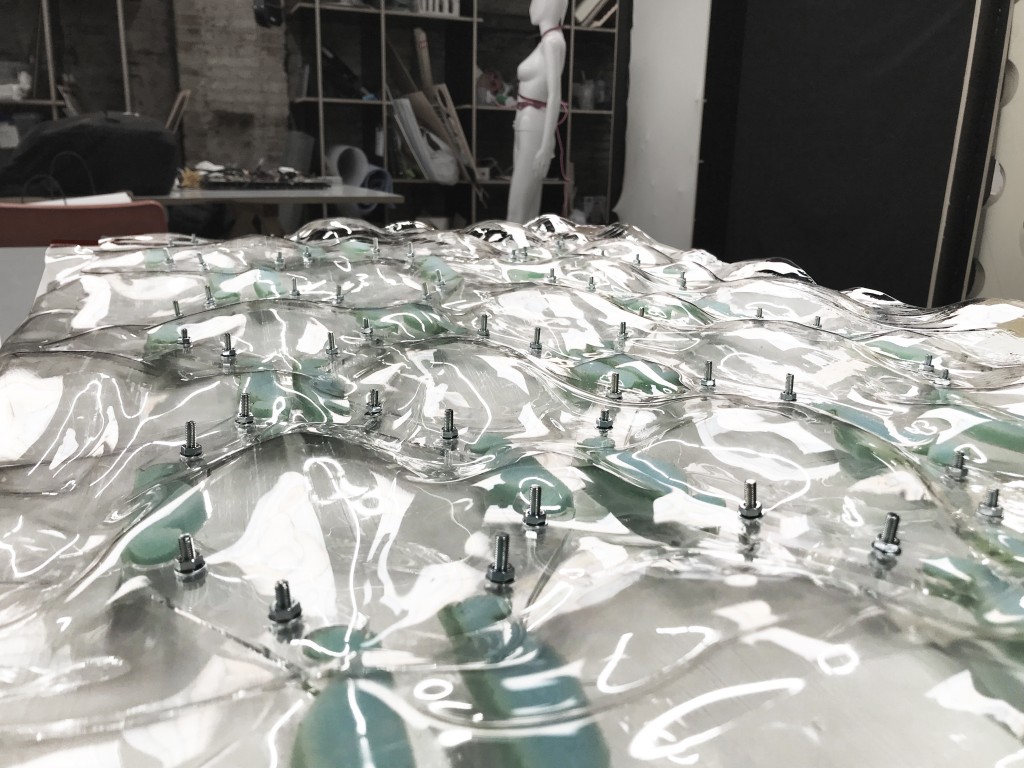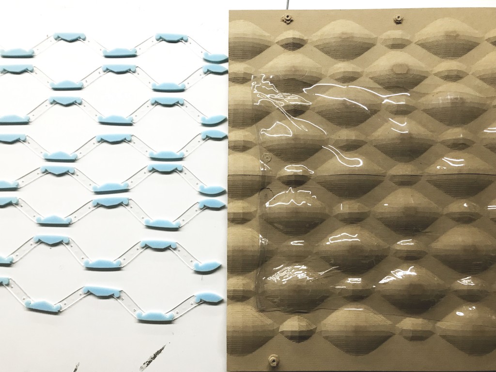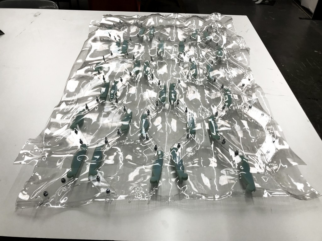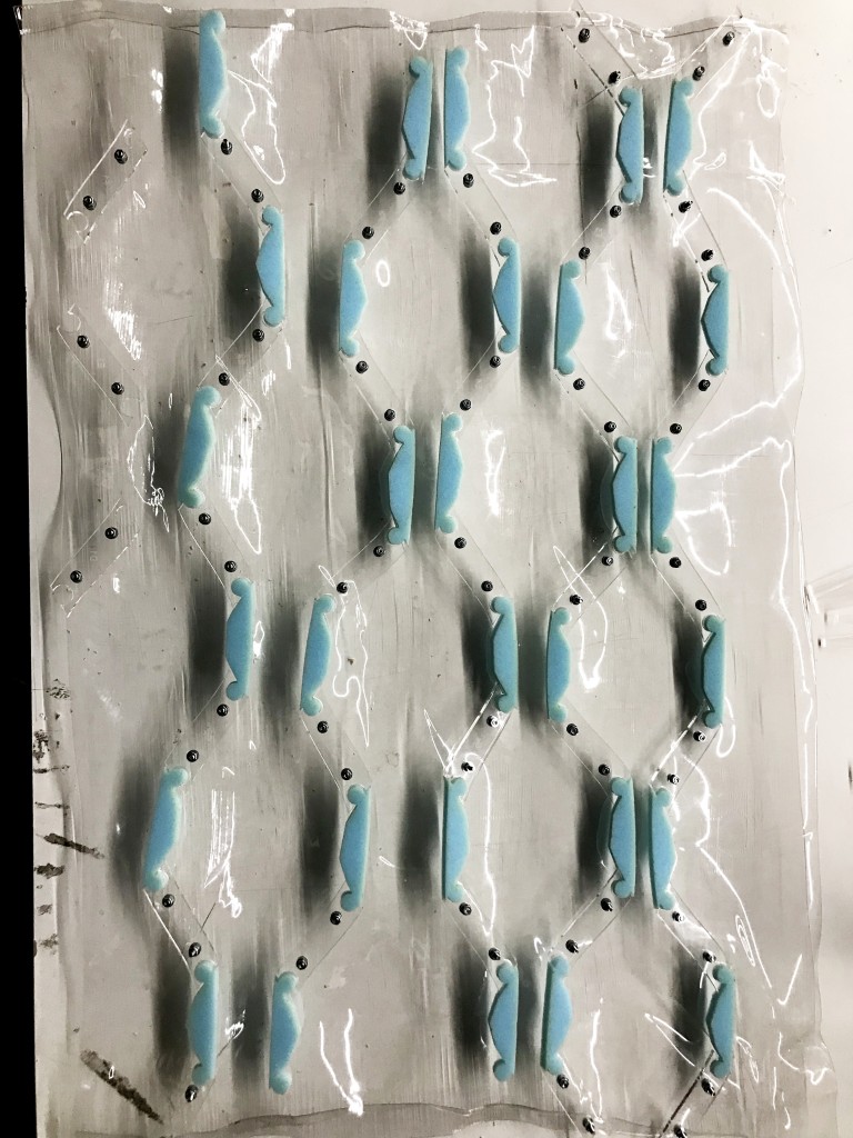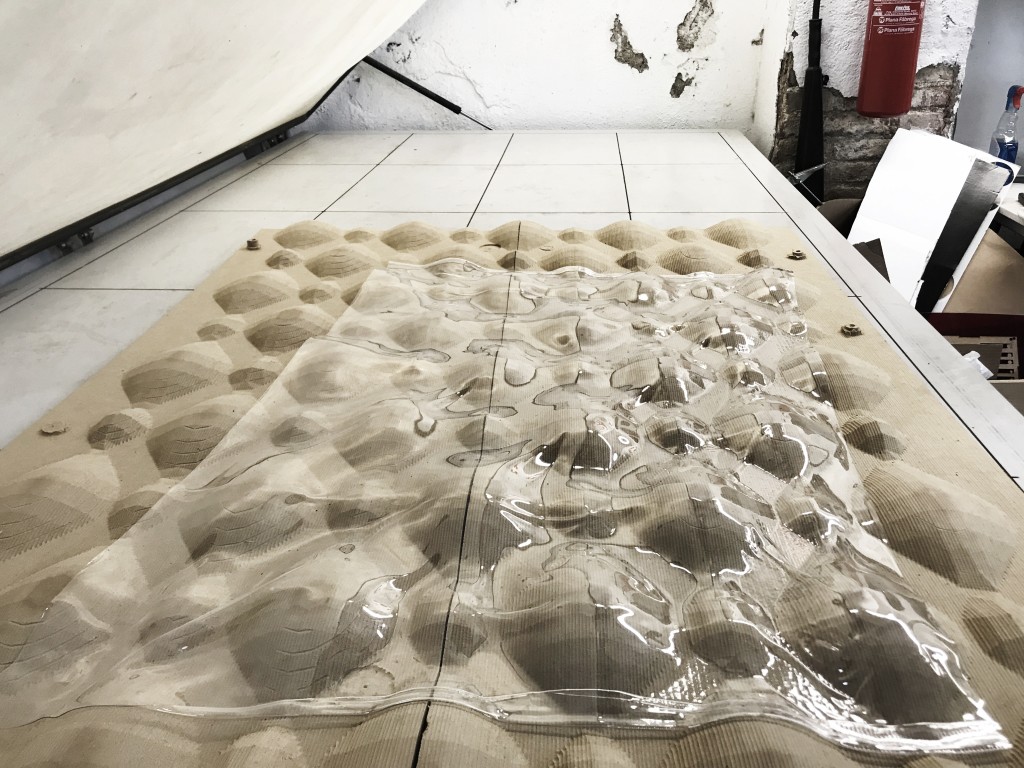 Vacuum forming is a fabrication method that is more favourable to thinner material. The advantage of using a thinner material is the flexibility that the material inherit. In order to seal and defined the chamber for light penetration mapping to the darken ground surface, strategies for rigid and soft joints arrangement are being explored.