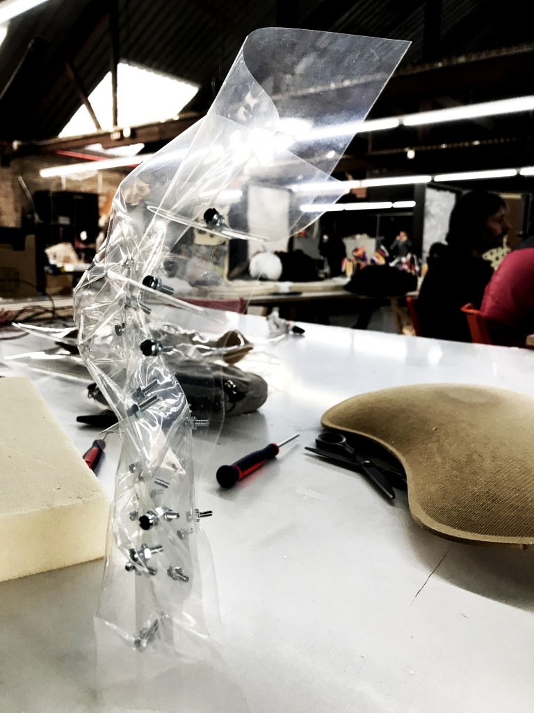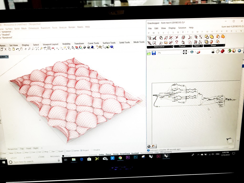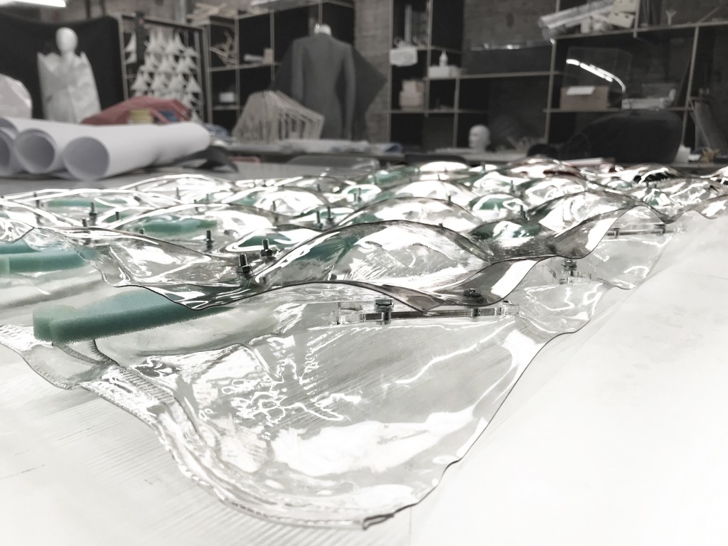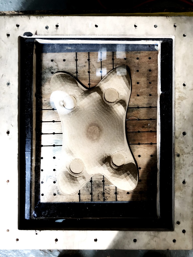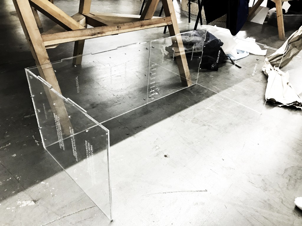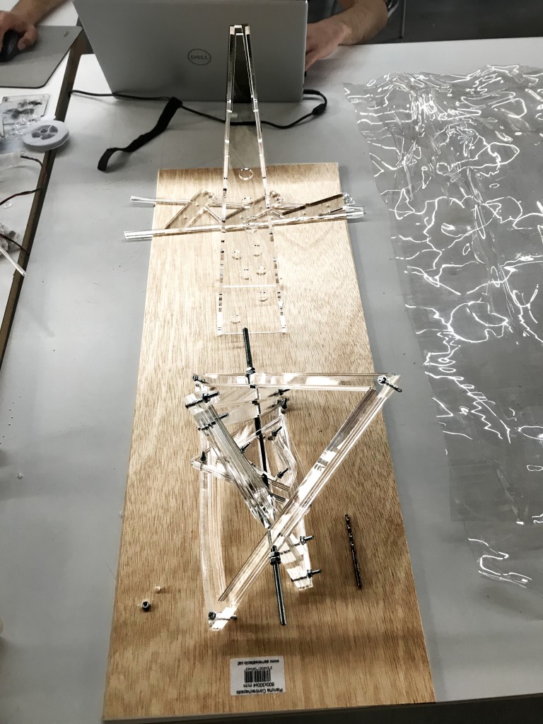 Vacuum forming is a fabrication method that is more favourable to thinner material. The advantage of using a thinner material is the flexibility that the material inherit. In order to seal and defined the chamber for light penetration mapping to the darken ground surface, strategies for rigid and soft joints arrangement are being explored.