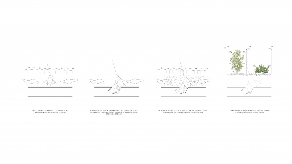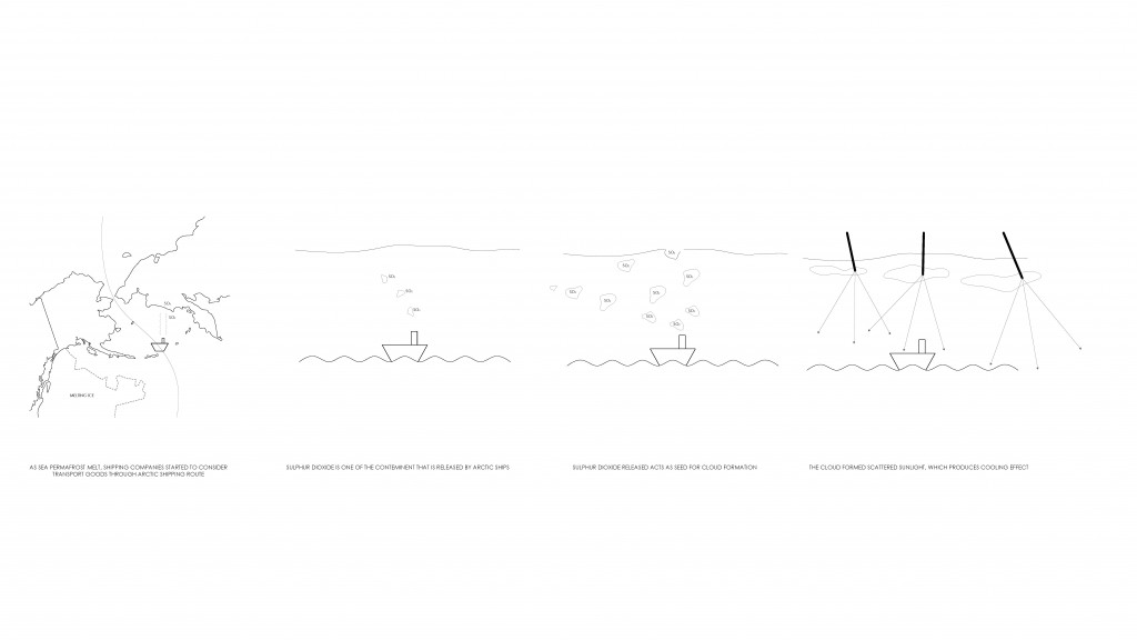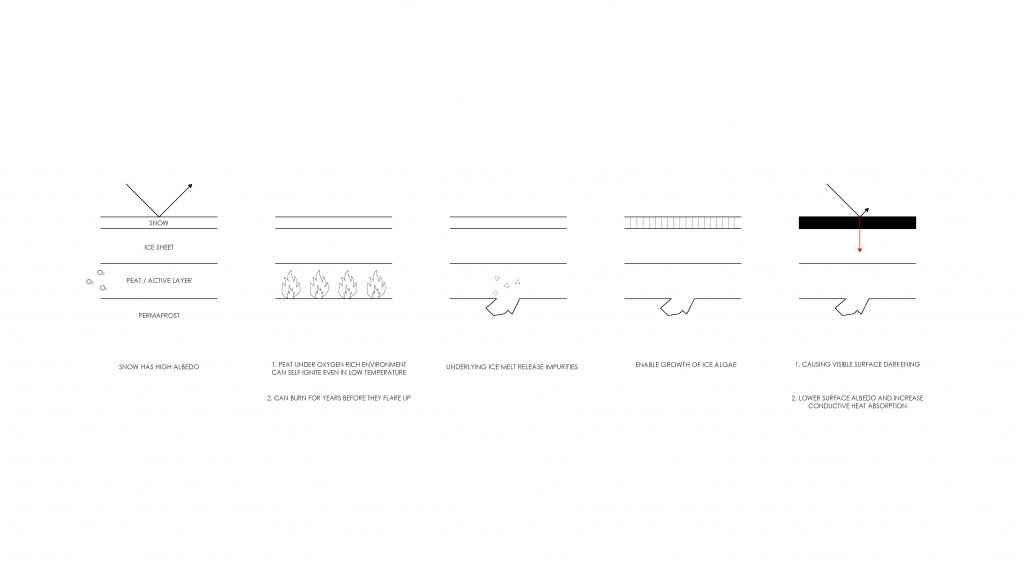 With our studio closely linked to the climate change agenda, the site selection process begins with looking at the certain climatic triggered events such as drought and wildfire together with the source of all these events which is the melting of permanently frozen matter in the arctic circle.
