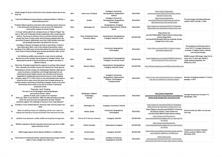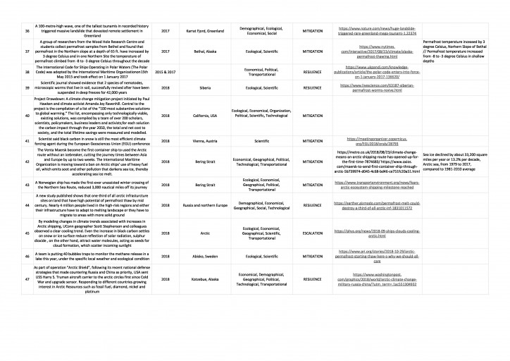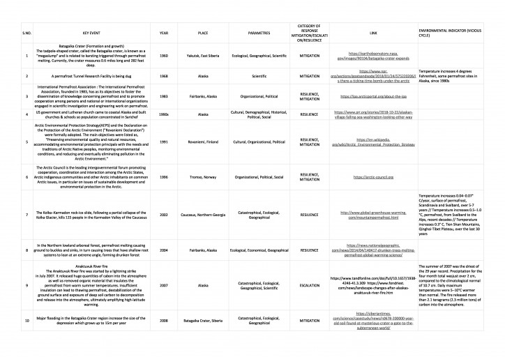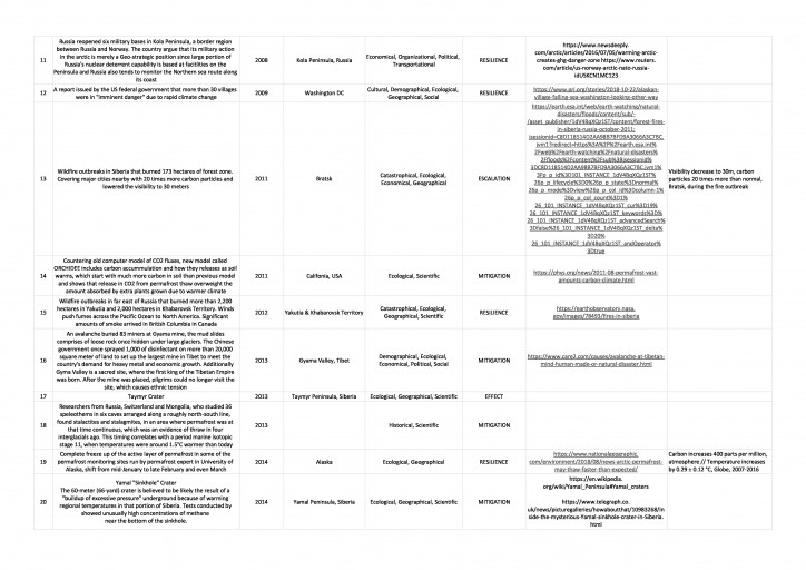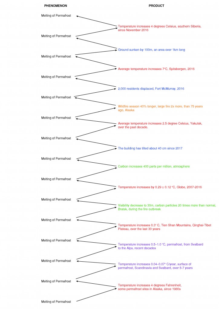 Events related to the topic of permafrost is being researched into and categorized according to aspects that are involved in a certain event and the implied strategies of that event. To map the particles through an animation, all the events are represented in numerical data using the same protocol.