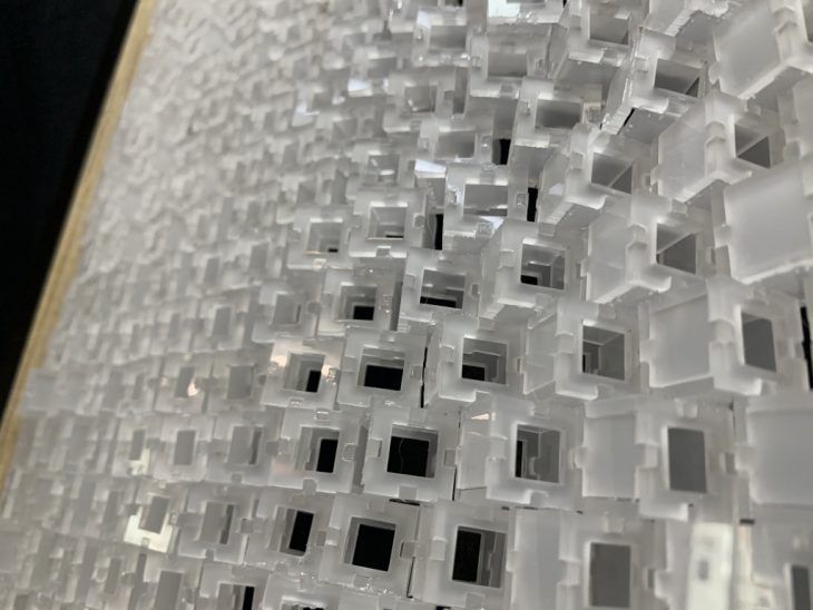 While selecting materials, the idea of face decoration was rejected to camouflage the building. The chosen material were cinder blocks which are used commonly throughout China because they are inexpensive. While pushing and analyzing the material; the rigidness and linearity, it was decided that instead of using the typical brick layering system with basic stacking idea, stacking algorithms would be created to make the material more vivid.