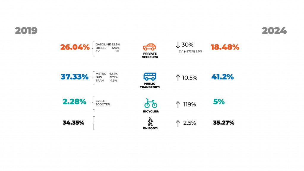 The new goal is to extend bicycle network for the whole city and transform spatial organization of the streets. The space occupancy effect will release car lanes in favor of other mode of transportation and provide advantages for behavioral changes as the private vehicle loses its space it is not the fastest alternative anymore.