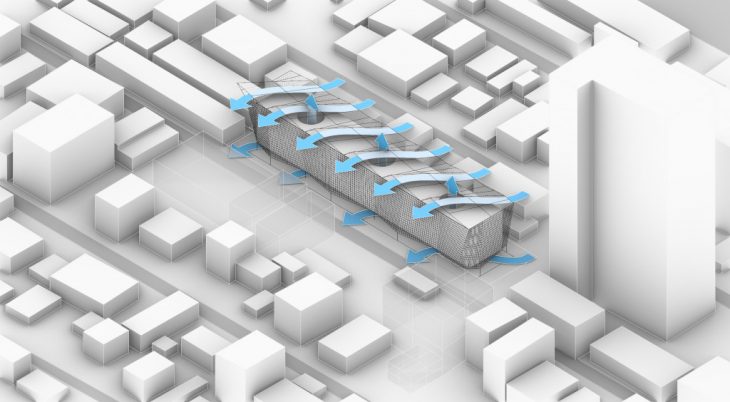 Since we have achieve the optimal form. The project still require the cross ventilation strategy. In this case, the façade will play an important role for opening in order to let wind flows across the building.