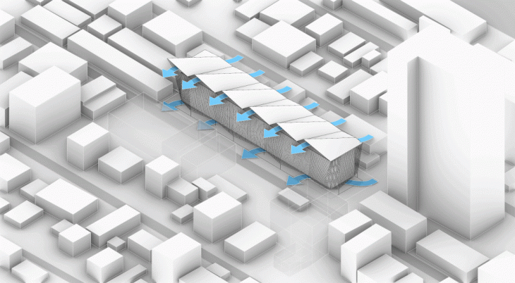 - 8. Roof rotated according to wind direction. By align the roof direction to wind direction, allowing faster flow to let heat from atrium out of the building