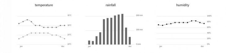The climate we are working with is hot and humid and brings us three main challenges: protection from the heat, humidity and rainfall, which are all intense throughout the year.