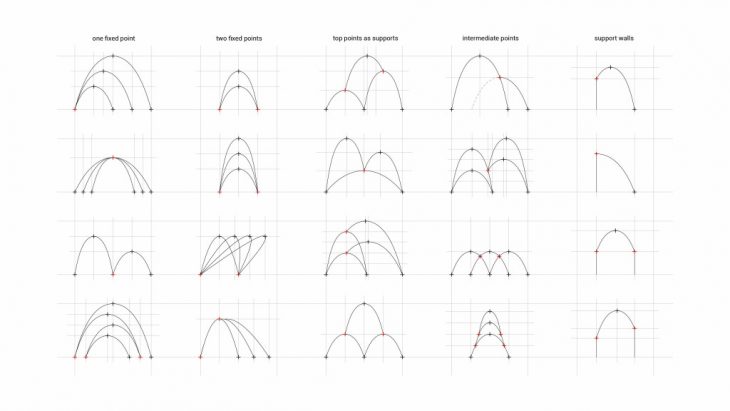 Our structure is defined by variations and associations of arches, of different shapes and heights. Such a structural system enables vertical and horizontal connections in various points of the arches, in multiple directions. These 2D studies orient the structural design.