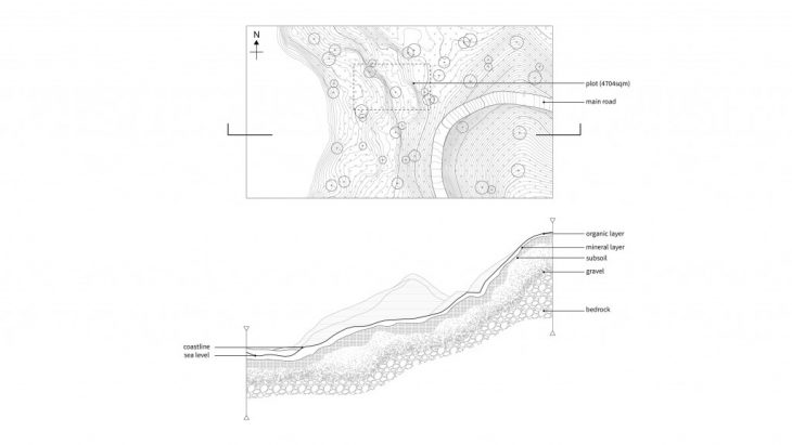 The site is located in Thailand, on a slope by the ocean. The natural conditions of the site favors ventilation, since the sloped topography naturally creates some air circulation dynamics that can be explored in design. It is well connected to the woods and the water, and the access to the site is through a local road.