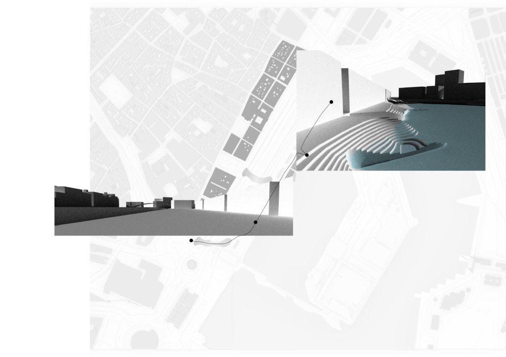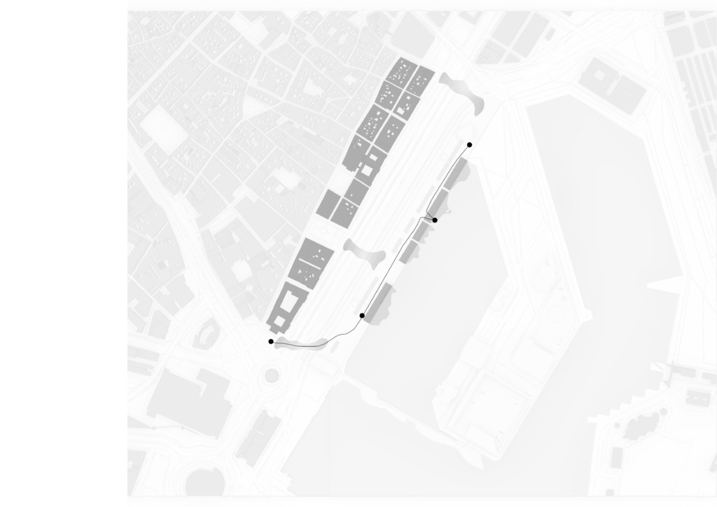 Hence, we first reconstructed the connective brides between the open space on Moll de la Fusta and the cityfront, then established a verticle series of platforms that guides through the site in a circular manner.