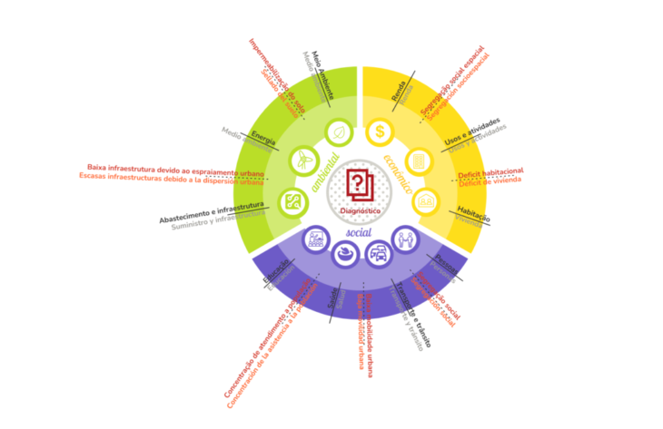 Objetivando ter maior entendimento de como deveria ser criada essa nova área urbana – um bairro periférico – o diagnóstico analisa três eixos: ambiental, econômico e social.