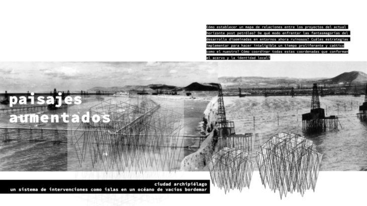¿Cómo establecer un mapa de relaciones entre los proyectos del actual horizonte post petróleo? ¿De qué modo enfrentar las fantasmagorías del desarrollo diseminadas en entornos ahora ruinosos? ¿Cuáles estrategias implementar para hacer inteligible un tiempo proliferante y caótico como el que marca nuestro presente? ¿Cómo coordinar todas estas coordenadas, que conforman el acervo de nuestra identidad local?