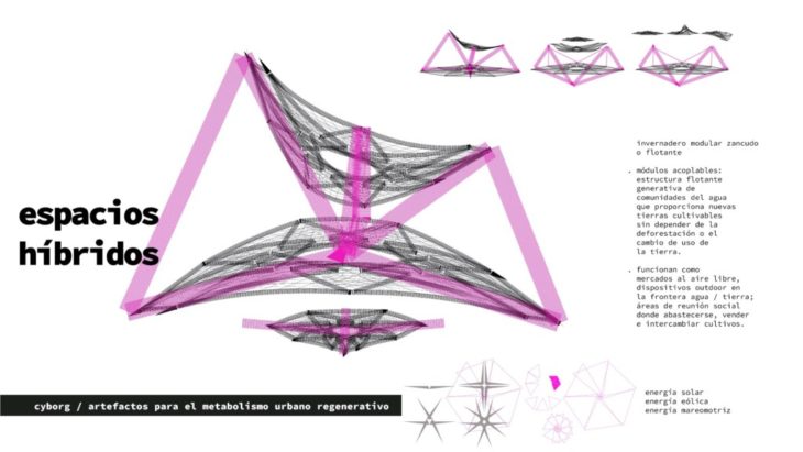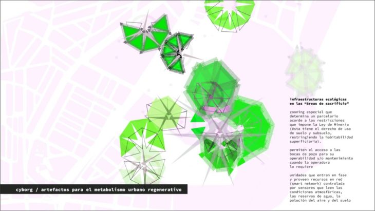 Este proyecto propone procesos de transición, negociación, mitigación, preservación, borrado y reconstrucción que investigan la morfología de estos territorios con obsolecencia programada, aplicando metodologías de selección natural para delinear un nuevo mapa del sistema ecológico urbano, un “Manual de Prácticas Ecosistémicas”, con intervenciones estratégicas y acciones tácticas regenerativas que definen un catálogo de: