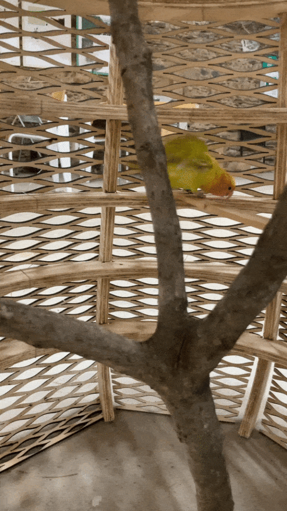 Peeko’s nest is our attempt to rethink the archetype of the cage as a physical language rather than an enclosure, addressing the physical , corporeal nature of a cage, as well as its symbolic power, its capacity to abstract, to represent idea of nature, and inform relation between species. Taking inspiration from how the Montezuma Oropendola shapes its habitat, we decided to keep that in mind, during the design process.