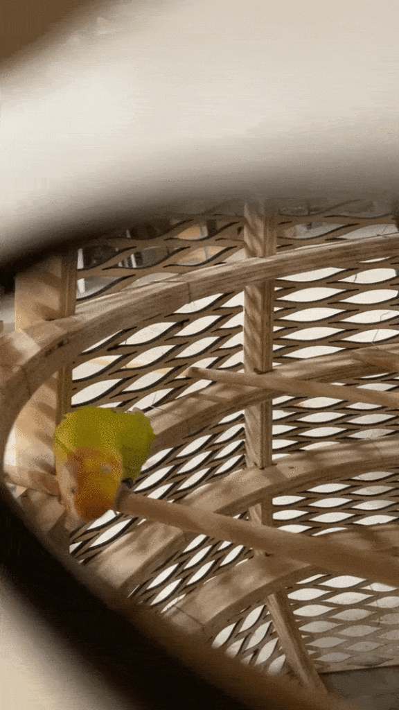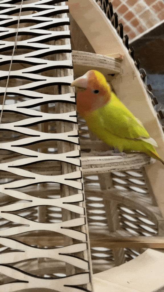 Peeko, who stayed in a regular bird cage in the not so regular Valldaura seemed like a good client to us when we were deciding which bird to focus on for our design. We then began a more careful analysis of her behavior patterns which helped us to arrive to a more informed design. Since Peeko is a domesticated animal, we also had to analyze our interacion with her. In terms of taking her out of the cage, as well as cleaning and feeding aspects.