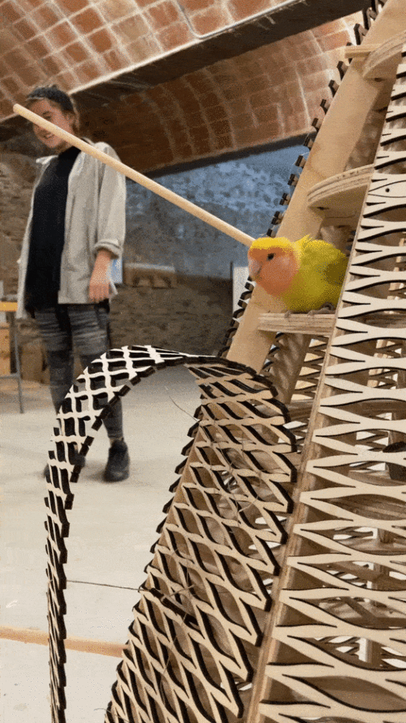 To best select the form we parametricised the form development. Keeping in mind a birds interaction inside and outside her enclosure we arrived to a form which we think suits her the best and also responds to context it sits in.