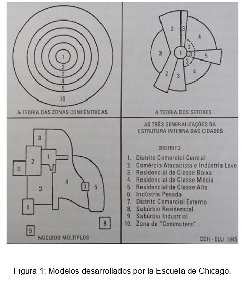 Cabe destacar que el primer y el segundo esquema tienen bases radiales, mientras que el tercer esquema pierde este formato porque probablemente busca incorporar los procesos vinculados a la dispersión que descaracteriza a la ciudad mononucleada. Los esquemas se vuelven más complejos y detallados, considerando en primer lugar el centro, la zona de transición y el patrón de residencias por clase social (a través de zonas concéntricas, mezclándolas después con ejes radiales), incorporando después industrias y centros secundarios, perdiendo el formato concéntrico y reflejando quizás la pérdida relativa de influencia del centro de la ciudad. Se detecta la fragmentación y complejización de las ciudades en el último esquema, pero manteniendo la existencia de las porciones previamente definidas, con la incorporación de otras.