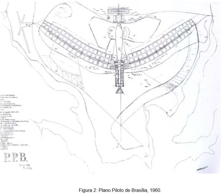 Estructuralmente, el Plan Piloto de Brasilia es el resultado de tres partes debidamente entrelazadas: el Eje Monumental, el Eje Vial-Residencial y la Plataforma – encuentro de los dos ejes – adaptándose a la topografía local, al flujo natural del agua, a la mejor orientación, arqueando uno de los ejes para contenerlo en el triángulo equilátero que define el área urbanizada, como se orienta en la Carta de Atenas (1933), que menciona siempre la importancia del conocimiento de la región en la que se inserta la ciudad, donde cada una de las cuatro funciones tiene su autonomía apoyada en los datos que aporta cada región – clima, topografía, costumbres – creando un campo de acción inagotable para los urbanistas.