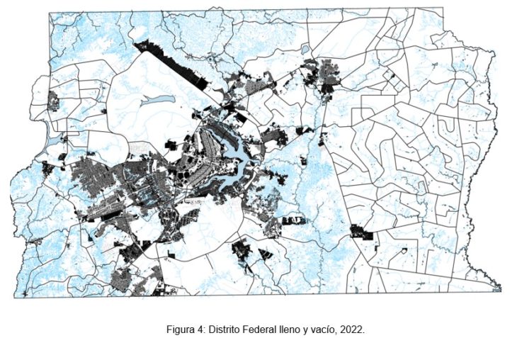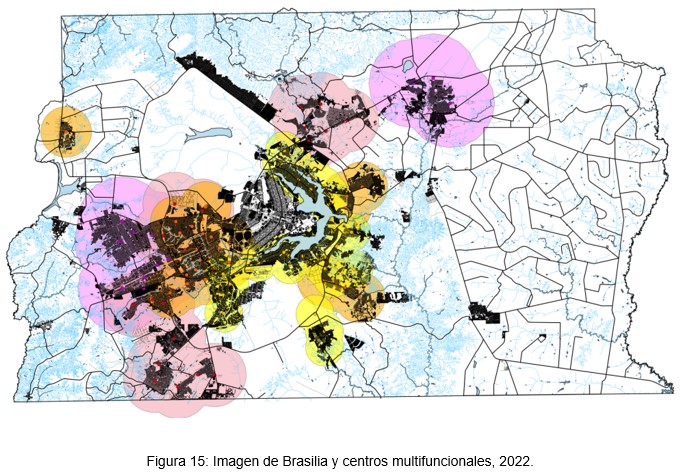 Rogers, 2011, presenta el desarrollo de una ciudad policéntrica, compacta y sostenible, basada en la conexión de escalas intermodales que permiten a la población moverse de forma diferenciada entre llenos y vacíos, haciendo que los intersticios entre las áreas residenciales de la periferia estén conectados por ejes de movilidad y conectados por hubs multifuncionales, con la función de acercar a la población a varias actividades que hasta entonces se encuentran en la región central de Brasilia.