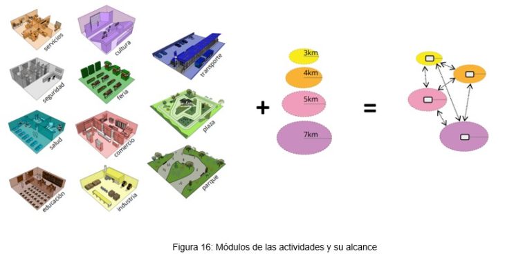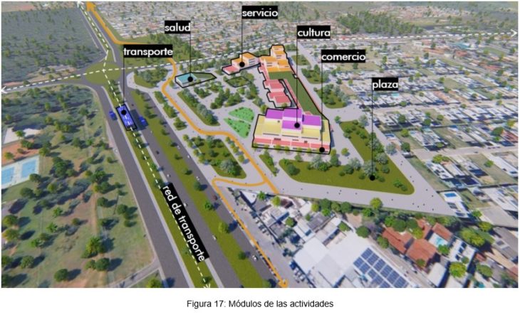 Las actividades y servicios que se proponen instalar están predefinidos y pretenden dar una mayor dinámica de actividades para que la población no tenga que desplazarse, las actividades pueden ser: servicios esenciales, culturales, de seguridad, de salud, comercio, industria, educación, mercadillos, plazas, parques y transporte.