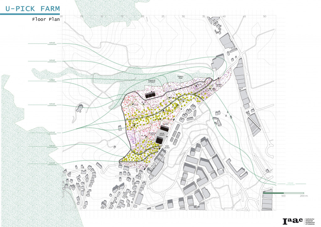 In the market people can pay for the harvested products or buy other organic products. The social hubs are meeting points, with the aim of enforcing human interaction. So the harvest of products becomes more playful, social and interactive. Finally, in the multifunctional space, different types of events are held, including educational conferences and specialized training for farmers.