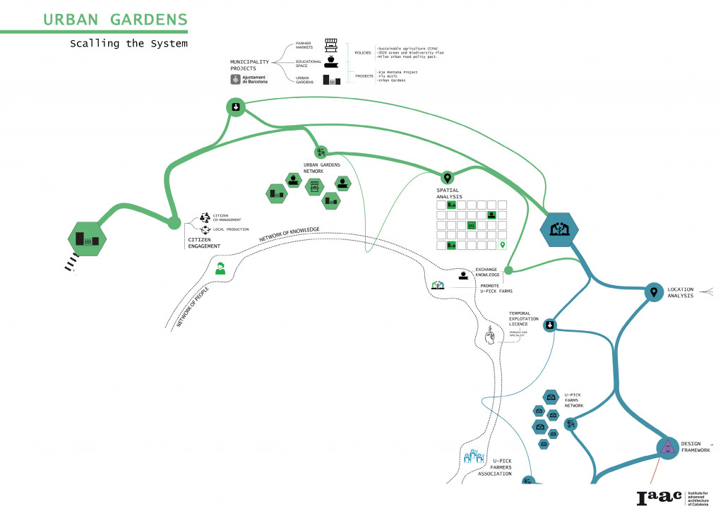 Moreover, we analyzed the existing network of urban gardens of Barcelona, promoted by the Municipality. The purpose of this network is to create co-management projects with the citizens, raise consciousness around organic food production and promote a local food system.