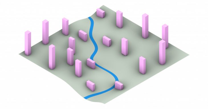 Building Orientation is a Machine Learning tool developed to orient a given set of buildings to specific target objects or objects. In this exercise, a portion of land with a stream flowing across its topography is considered and the algorithm is trained to rotate the longer lengths facade towards the stream in order to create maximum views from the buildings, which leads to more number of apartments with the view of the steam.