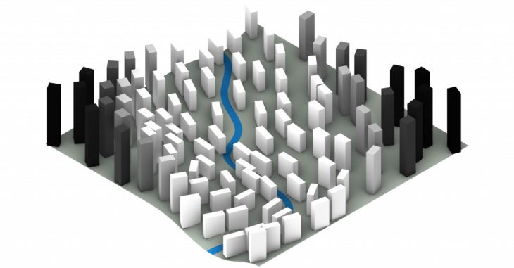 Three types of building typologies are considered. The goal is to orient and sort buildings in the specific height based on its position on the given topography and its distance from the water body.