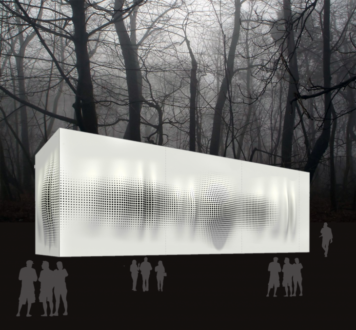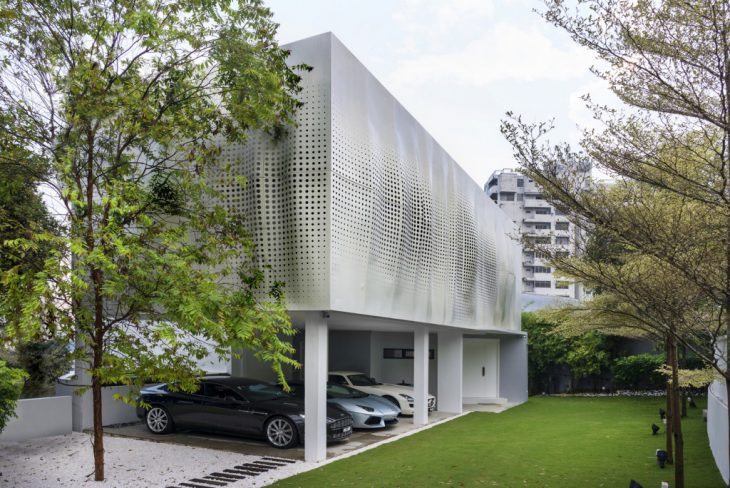Bukit Pantai Residence is a residential structure based in Kuala Lumpur hillside. The façade consists of aluminum sheets that have been molded to form a ripple effect and circular punctures made for right amount of sunlight to enter. As the weather in the location is warm, these circular perforations help in creating shade and ventilated spaces.