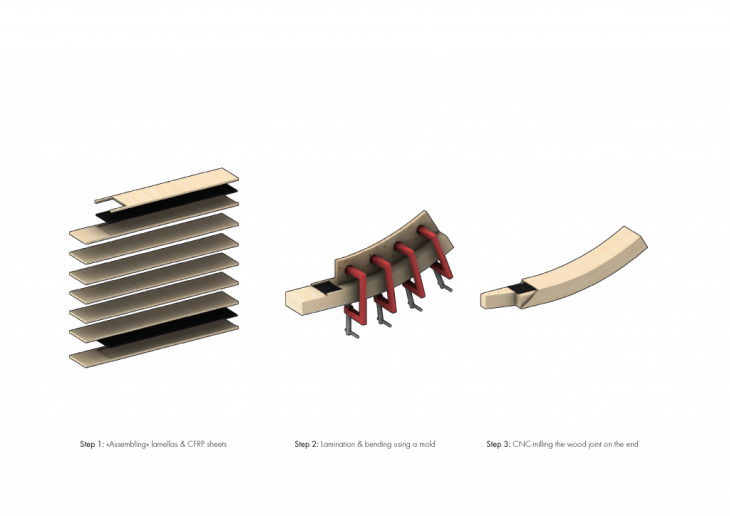 In recent years the AEC industry shows an increasing interest in the engineered timber, as a sustainable alternative to concrete and steel. At the same time, the constant development and decreasing price of polymer materials, such as Carbon fibers, makes designers consider these materials for construction. Combining engineered timber and carbon fibers by adding strong adhesives, such as epoxy resin, enables the manufacturing of really strong and smart material systems.