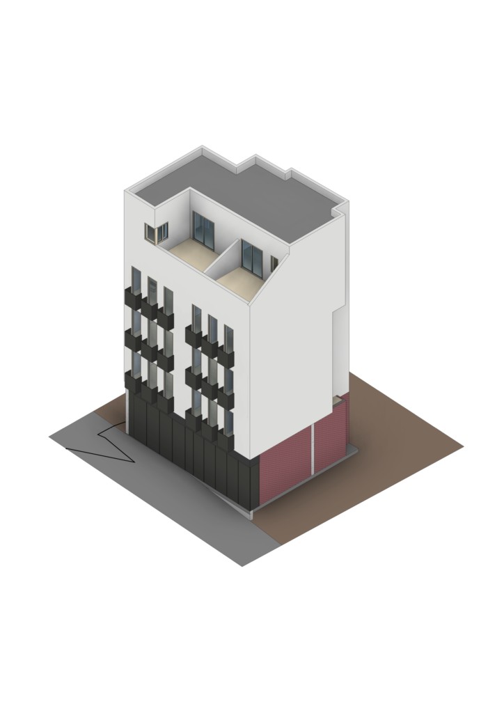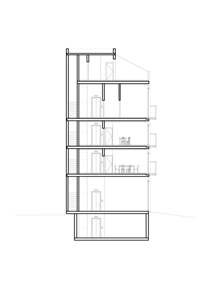 Located in Madrid’s downtown, this multifamily mid-rise building is the first intersticial residential building that uses CLT panels as the main structural elements in the city.