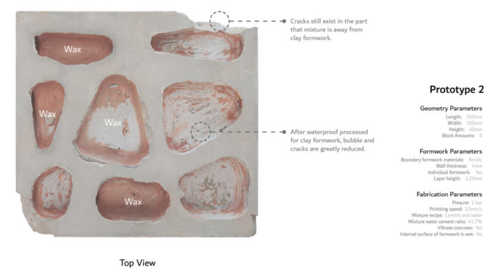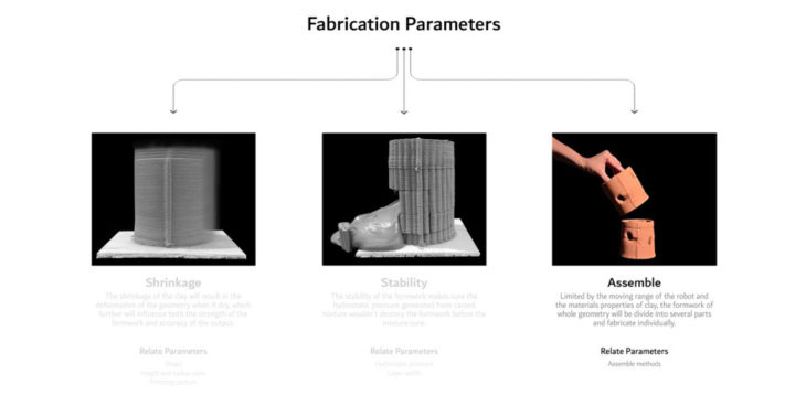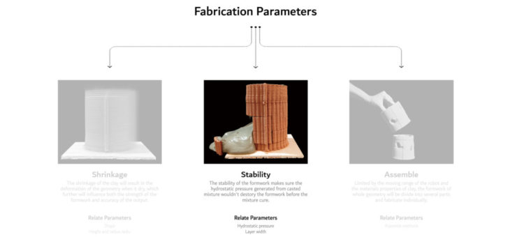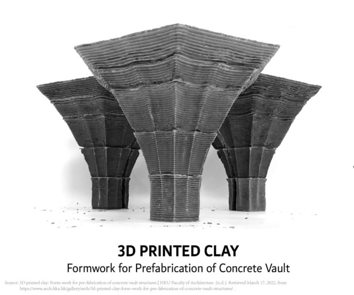 The last project is Eggshell: Ultra-Thin Three-Dimensional Printed Formwork for Concrete Structures, done by ETH. Although is no use clay as formwork materials, the Eggshell provides a fabrication process that uses 1.5-mm-thin thermoplastic shell that can be used as a formwork, permitting users to create projects on a large scale, accompanied by robotics in FDM 3D printing.