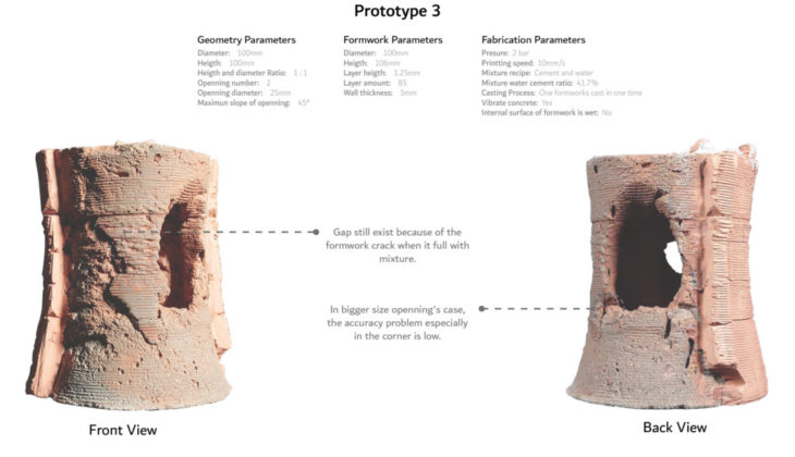The first project is 3D printed clay formwork for prefabrication concrete vault, done by HKU. In this project, researchers explore the possibility of concrete prefabrication by the use of clay formwork. The outcome result is the combination of unique aesthetics and structural efficiency. However, they didn’t further explore the available geometry and propose a entire system for the fabrication process.