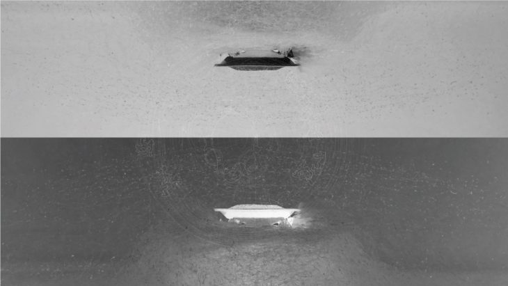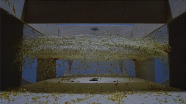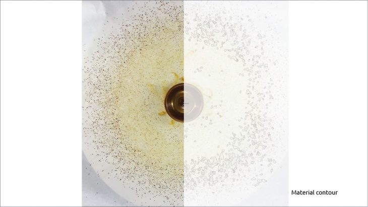 we were also able to visualize the energy flow in the empty space, according to the movement and the accumulation of the material along the surface.
