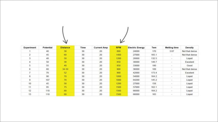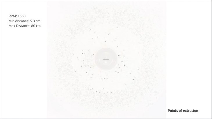 Then, by taking the center point of each contour we were able to get the distance from the center to each point. At this point we could understand the relation between the rotation speed and the distance it shoots the material.