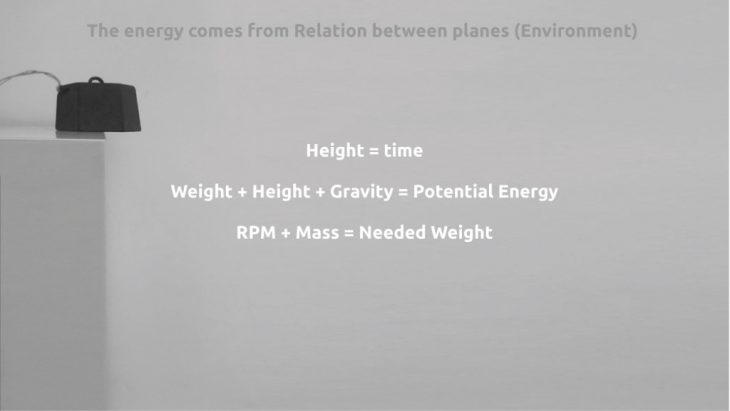 This is basically a system that has all its components and variable fixed, except one – where do we place our energy source (the weight) – in space. This will produce different patterns of action according to the planes- highest lowest and receiving plain of the material.
