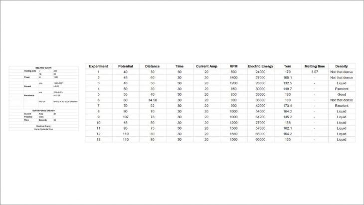Here is the data that was collected from some experiments