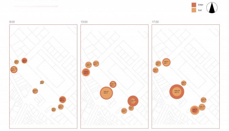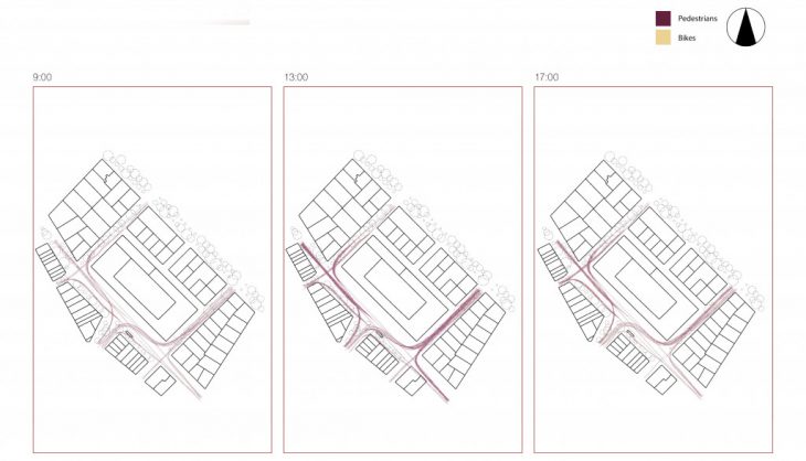 The final proposal was based on a thorough data collection and mapping process including sun/shadow analysis, on-site activities, use of land of the surrounding buildings, circulation paths and access points. The overlap of the above data had a major impact on the positioning of the intervention on site which aims to enhance pedestrian circulation, bring the visitors to the Mercat del Born and engage them with the restaurants located in the plaza. Three typologies of active bending are implemented within the final design, which offer different functionalities.