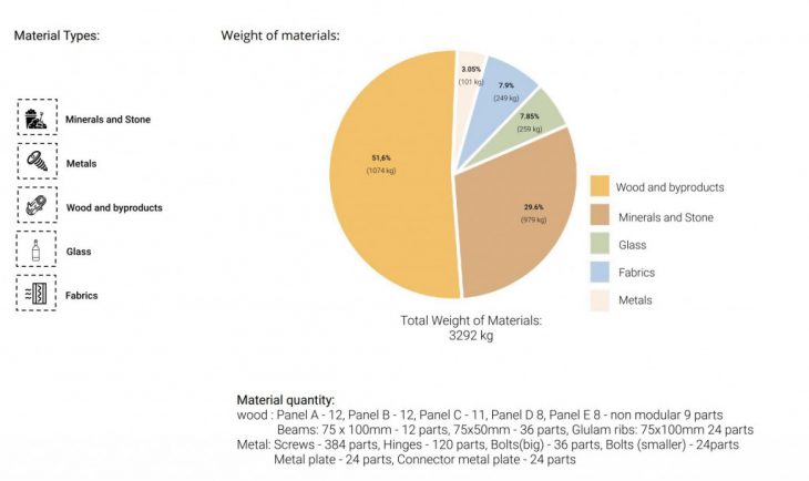 Most of our structure is made from timber, which will need to be treated to withstand moisture, rot and termites. Therefore, our strategy should first be to reuse elements in their initial form, before resizing to reuse or finally shredding to recycle them into particle boards. We have redesigned parts into changeable modules that be easier to disassemble when the structure is moved or repaired and will need less resizing when parts are reused and redistributed.
