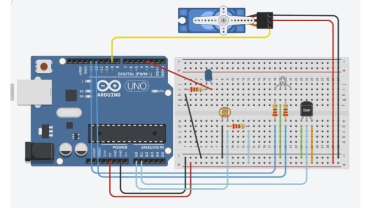 The light sensors can detect the amount of light available and initiate and control the switching on/off of the led lights. Secondly, the temperature sensors will detect whether the temperature inside the greenhouse is adequate and, as a result, will control the opening and closing of the greenhouse flaps to maintain the required controlled temperature.