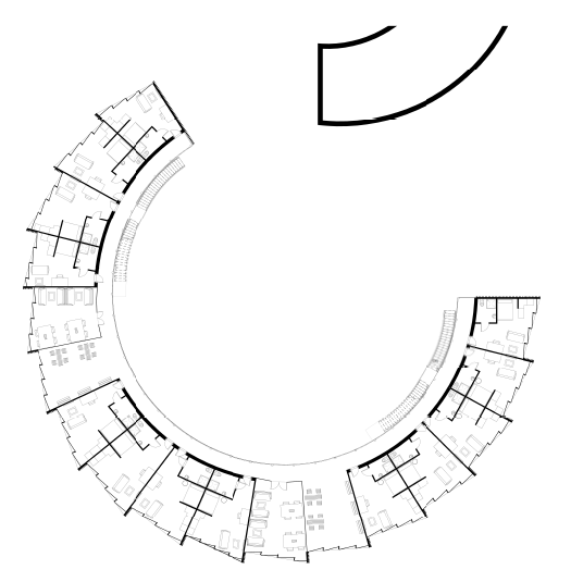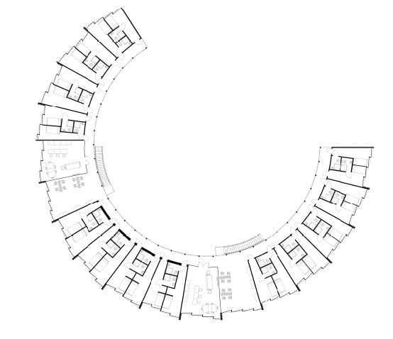 The third floor accommodates 26 Student accommodation rooms which provide students with a bathroom and shower facility, sleeping area and a work desk. Storage is located above the bed. Similar to the studio apartments, the external façade is to act as a French balcony and slide open to allow occupants to open up their accommodation to the surrounding environment and create the feeling of a larger space. The third floor accommodates students cooking and social needs by providing to shared cooking and dining spaces on each floor. Beside each floor is an open open relaxation area for students to eat outside the shared dining areas.