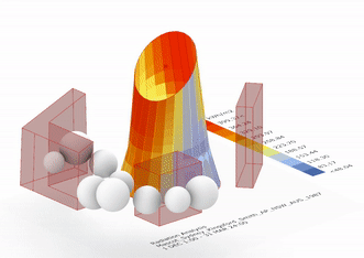 The next stage of the project is to develop a structure that can help cooling down public spaces on the ground,Such as an internal courtyard in a building block, which usually receives limited ventilation. Wind simulations are used to test a few iterations of wind catcher forms. The parameters include the height of the tower, the size of the opening and the size of the neck, which are expected to affect the way the structure catches and redirects wind. The selected option is the tallest structure, with a large opening and small outlet. The structures are able to accelerate the wind speed because of the bottleneck effect. But it is important to note that it also changes and sometimes slows down the velocity of the wind around the structure.