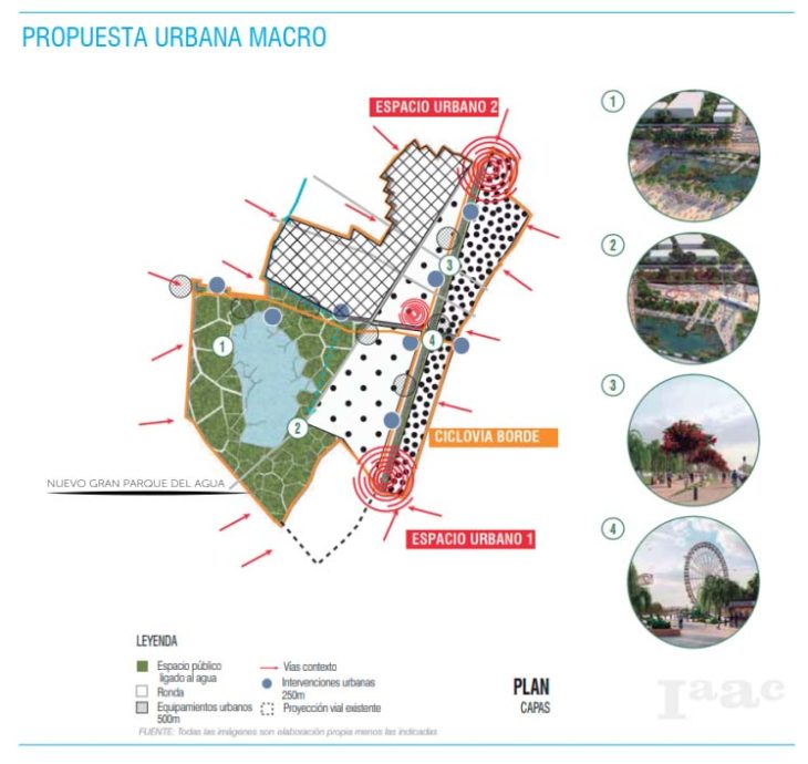 La propuesta de costura de la BALPs integra ejes de movilidad y transporte para conectar la Base Aérea con los barrios adyacentes, nuevas áreas urbanas a desarrollar a modo de supermanzanas, un gran parque ligado al agua, espacios urbanos a modo de nodos importantes en los ejes nor-este y sur-este; y una vía a modo de ronda alrededor de su perímetro.