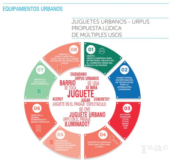 El concepto de los equipamientos urbanos está relacionado a la idea de juego, juguete en Quechua URPU. Los URPUs son equipamientos urbanos que sirven para suplir las carencias que los barrios alrededor de la BALPs tienen.