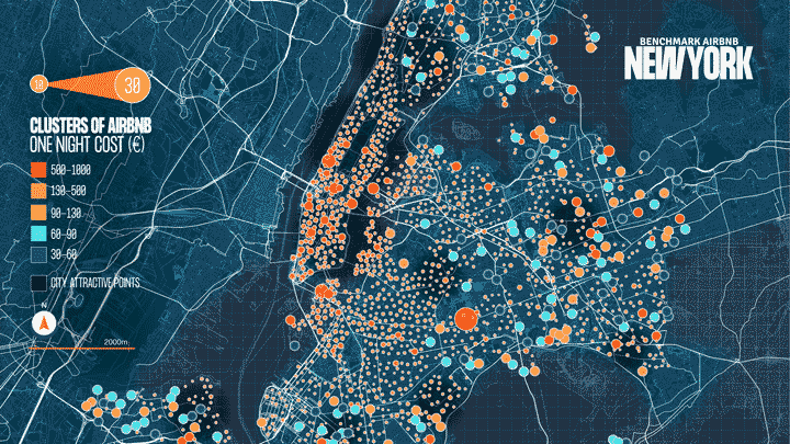 How have cities faced social inequality? After defining Land Value and understanding the negative consequences of this model worldwide, we propose a comparison between 4 cities: New York, Santiago, Amsterdam and Tokyo. Realities with opposite conditions for location, population density, area and economy but, in spite of this, with a common feature: they all have divisions in land value and a certain degree of inequality. This comparison includes two stages: first, the identification of the referential land value conditions using price-per-night data from the Airbnb platform to create a location density map in relation to the main urban landmarks in the city; and second, the assessment of city policies aimed to reduce inequality (segregation and gentrification). This helps the research project to understand “cause and effect” between policies and geospatial patterns.