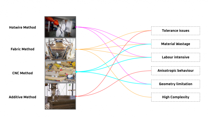 As we need the faster way of construction but with little impact on environment so the material wastage should be less and speed of product faster. Main method for digital fabrication involves subtractive or additive process. In susbtractive the yield lesser than the additive process because there is lot of material wastage in the process where as in additive approx. all the material is utilized and thus no environmental impact in terms of resource wastage. If we look in terms of labor requirement then also bigger project with additive process can be executed with short team.