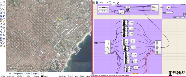 After extruding all the paths and combining 4 sets of data from different colleagues, I can conclude that much time was spent in the central part of the city , the area around Iaac and Port Olympic.