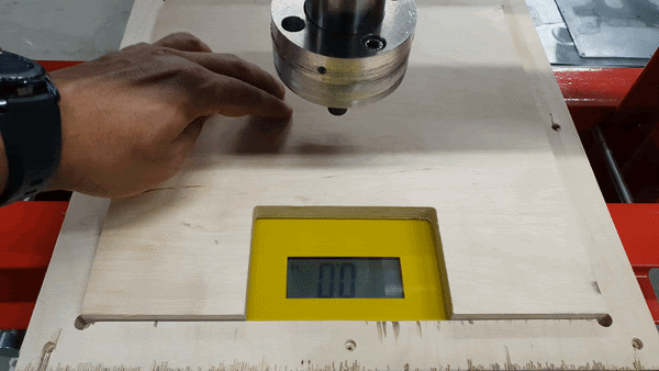 To analyze creasesing behaviour and quantify it with respect to the load applied by the hydraulic press, a digital weight scale was fixed under the hydraulic press (limit – 150kg). Since the design only required subtle creases of soft and small gauge material (0.5mm thickness aluminium), the required load was minimal. Weight/press load application exploration was also a part of test & trial fabrication (explained in further detail below)