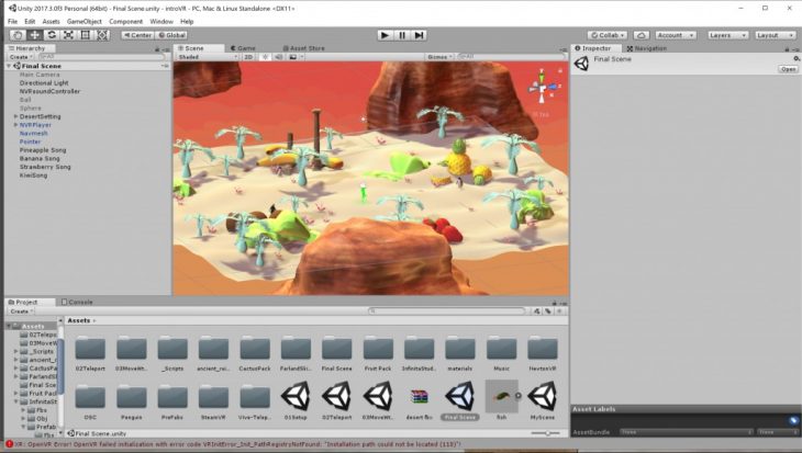 This virtual reality experience takes you through a surreal desert landscape while in search of ruins and music. Created using Unity and implemented on the HTC VIVE, the user gets to explore the world created while discovering Drake songs along the way. First a 3D dessert landscape was modeled where there are 4 ruins of giant fruit. Each fruit holds a 3D sound created in unity, the closer to the source the louder the audio gets. Users start in the middle of the desert and must find these 4 ruins, in turn discovering an accompanying Drake song specifically curated from his More Life album.