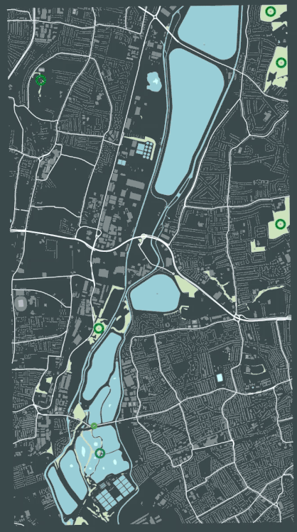 Let us scale down our study to the A406 highway area, cutting through the Epping forest that was once expanded by the lea river. We categorized the forest fragments to adequately link them between each other , and with the nearest water bodies in that area.