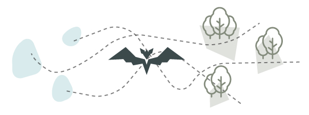 In addition to that, we thought it would be better to merge an important component with the designated paths: roads with bats favorite trees alignments.