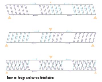 In the second model, we decided to laser cut the materials for the round patios, also reduced their size. For the trusses, we started looking at the usual form, and start playing with an effective way of redesign it without affecting the load distribution.